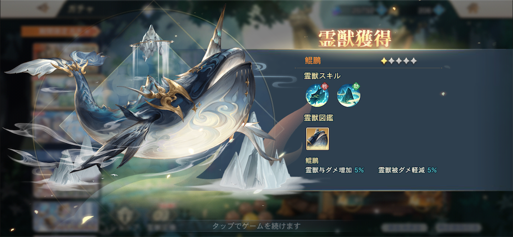 2024-08-23 オリアカ 8/23 オリエントアルカディア 新霊獣、鯤鵬をゲット。 デカすぎてお顔見えない!かわいい! あと、 ギルドショップで購入したり忘れたりでタラタラタラタラ進めていた爵位がようやっと最高位に…。 戦力50億までもうちょいだ〜